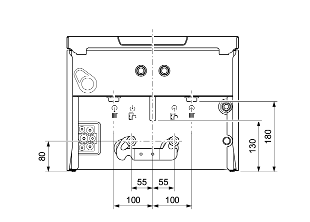 Штуцер подключения холодной воды G 3/4” (запорный кран входит в комплект поставки) Штуцер подключения обратной линии отопления G 3/4”
