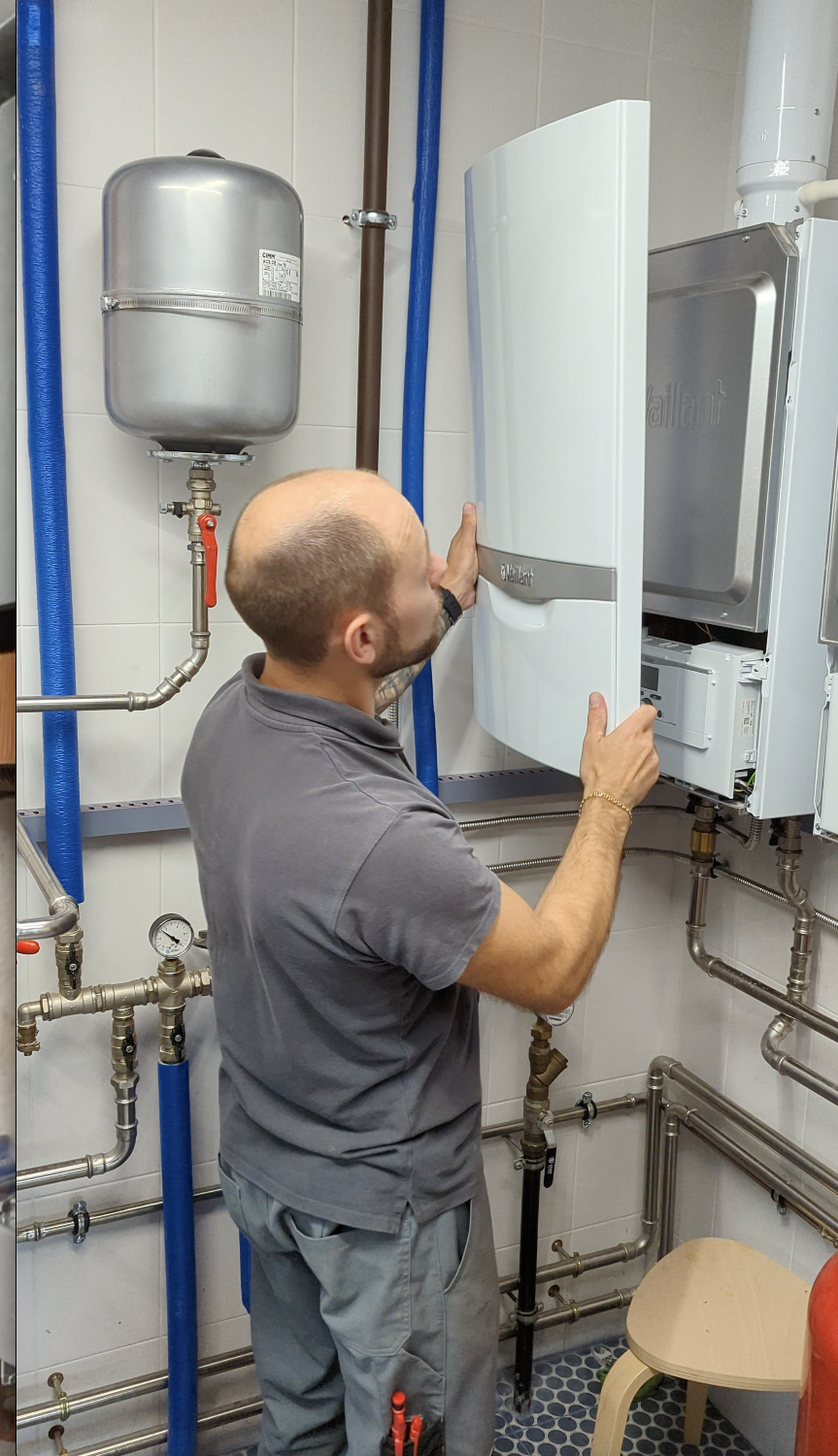 Выполнен монтаж котельной на базе двух газовых котлов Vaillant turboTEC VU 242/5-5. Каскадная система обеспечивает резервирование и стабильное теплоснабжение даже в сильные морозы: если один котел выйдет из строя, второй продолжит обогрев, а автоматика регулирует мощность в зависимости от потребности в тепле. Котлы установлены на подготовленное основание с соблюдением норм безопасности, выполнено подключение к газовой магистрали с установкой запорной арматуры и фильтров. Обвязка выполнена трубами из нержавеющей стали с теплоизоляцией для минимизации теплопотерь. Установлены насосные группы с балансировочными клапанами для равномерного распределения тепла по контурам. Смонтирован коаксиальный дымоход из высоколегированной стали, устойчивый к коррозии и высоким температурам. Подключена интеллектуальная система управления multiMATIC 700 с программированием режимов работы с учетом теплопотерь здания и погодных условий. Проведены пусконаладочные работы, тестирование всех режимов и инструктаж владельца по управлению системой.